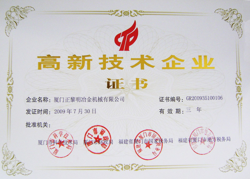 高新技术企业证书