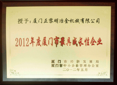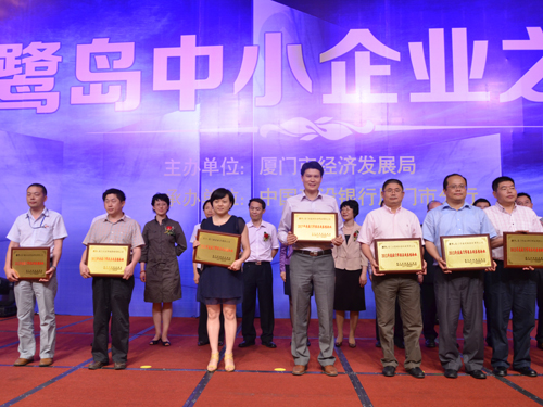 本次博览会表彰了“2012年度厦门市最具成长性企业”98户;“2012年度厦门市成长型企业”350户;“2012年度厦门市具有成长潜力小企业”102户。经厦门市经发局与厦门建行推荐,我司黄溢忠董事长出席了5月11日晚上在会展国际会议中心举办的“鹭岛小企业之夜”,代表十佳“2012年度厦门市最具成长性企业”与“2011年十佳卓越成长企业”上台领取奖状。
